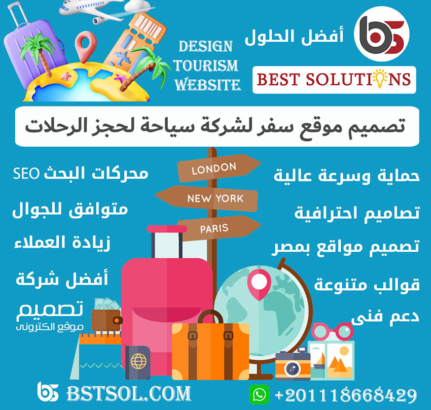 نوفر لك في شركة افضل الحلول تصميم موقع سياحي وتنفيذ أفضل موقع سياحي موجود في مجال السياحة في مصر والسعودية وكل الدول  التي تستهدفها ويكون ذلك من خلال مجموعة تصميمات كبيرة ومميزة